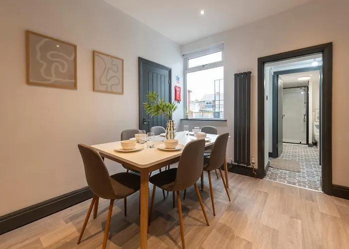 Spacious 4-Bed Home Near Kirkstall & Leeds City With Parking Ideal For Long Stays & Work Trips apartment offers convenient self-catering facilities, including a kitchen with a fridge, an oven, and glassware. Leeds Bradford airport is at a 20-minute driving distance, and Raynville Road Victoria Park Grove bus stop is just a few steps from the apartment.